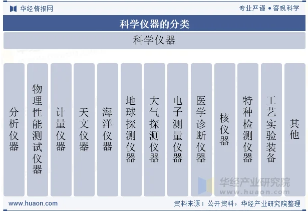 科学仪器作为探寻世界、延伸认知的重要手段,对于经济发展、社会稳定具有重要意义,更是被众多国家摆在科学、经济、文化、社会发展的核心位置。因此,科学仪器类产业的发展同国家综合国力的增强息息相关。按照科研设施与仪器国家网络管理平台对科学仪器的分类方法,科学仪器分为分析仪器、物理性能测试仪器、计量仪器、电子测量仪器、海洋仪器、地球探测仪器、大气探测仪器、天文仪器、医学诊断仪器、核仪器、特种检测仪器、工艺实验设备等12大类。